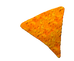 A single, triangular Dorito nacho chip, known for its cheesy flavor, rotating against a clean white background.