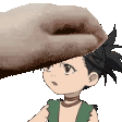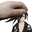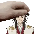 A pixel art hand gently pats and squishes Dororo's head in a cute, animated sticker.