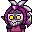 A pixel art sticker of Dota 2 character Dazzle, featuring purple hair, a bow, and a concerned expression.
