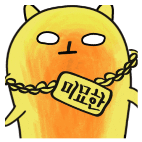 A cute cartoon character, possibly a raccoon, with a displeased or ambiguous expression, wearing a chain with Korean text '미묘한' (Ambiguous).