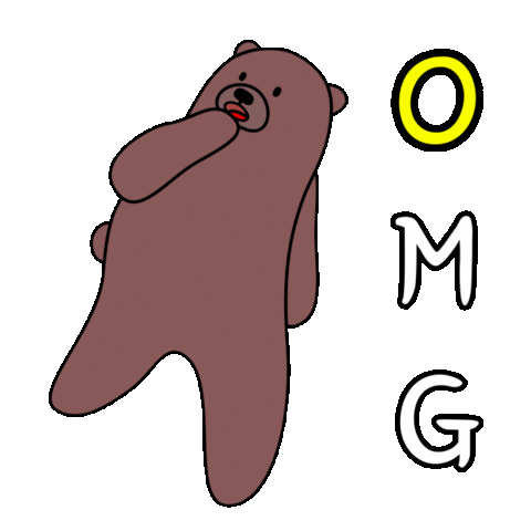 A cute brown cartoon bear looks shocked with its hand over its mouth, accompanied by the text 'OMG' in bold letters.