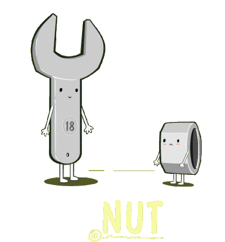 A happy wrench and a sad nut illustrate the pun 'drive me nut' in this witty animated sticker.