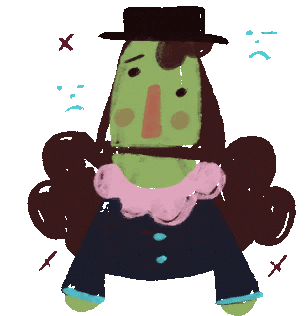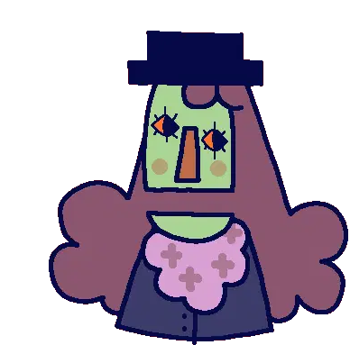 Dr Habit, also known as Boris Habit, appears with a sad expression, surrounded by blue frowns and red sparkles.