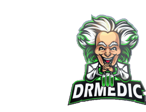 Dr Medic Gaming Babu Solomon logo sticker featuring a mad scientist character with green hair and test tubes.