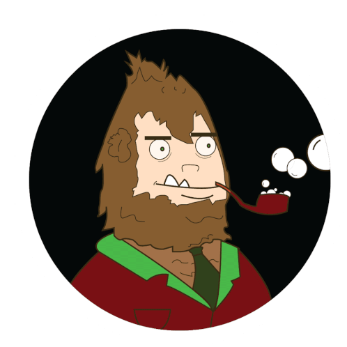 Dr Squatch, the bearded character, smokes a pipe, blowing whimsical bubbles in this animated sticker.