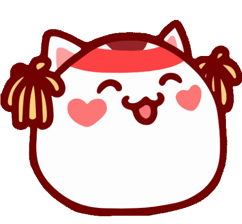 Cute Dragon Raja character as a cheerful cheerleader with pom-poms, heart cheeks, and cat ears.