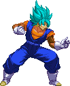 Pixel art sticker of Dragon Ball's Vegito in his Super Saiyan Blue form, striking a powerful fighting pose.
