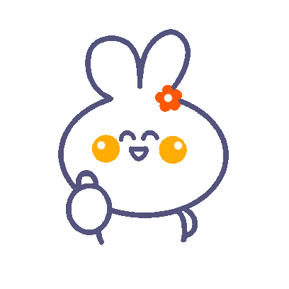 An adorable animated sticker featuring a hand-drawn rabbit with pink ears, holding a delicate flower.