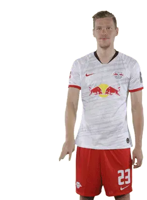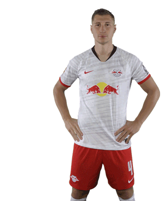 Willi Orban, the RB Leipzig footballer, counts down from three to one, showing fingers in his team jersey.