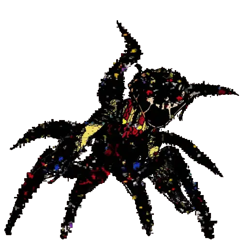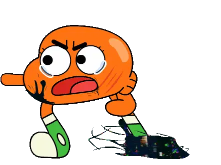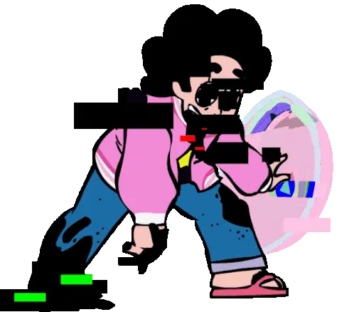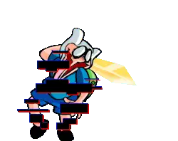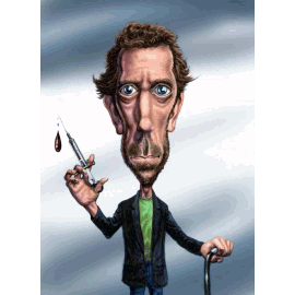 A glitchy caricature of Dr. House in the Pibby style, holding a blood-filled syringe and a cane.