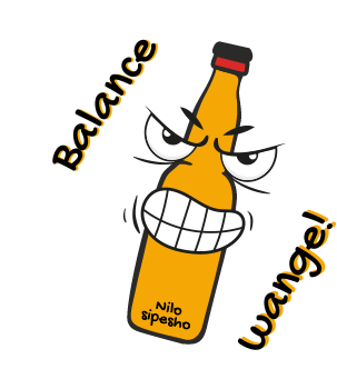 An animated sticker featuring an angry-faced beer bottle with a wide grin, displaying the text 'Balance' and 'wange!' and 'Nilo sipesho'.