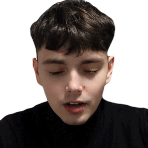 Jan Dabrowski sips a drink from a clear cup, looking down then briefly up, on a transparent background.