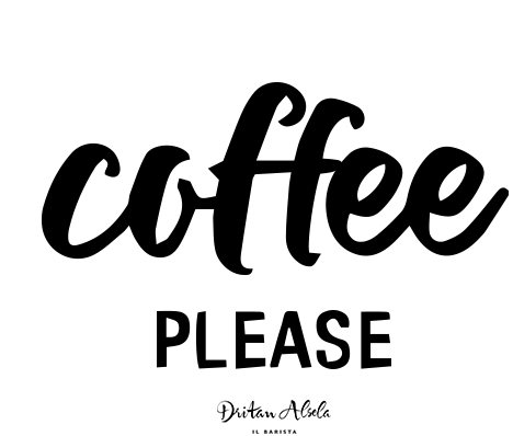 Dritan Alsela's animated sticker featuring the iconic 'coffee PLEASE' text, with lines appearing for emphasis.