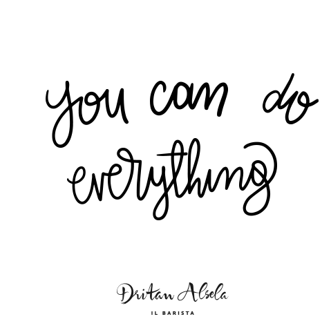 Dritan Alsela's motivational quote: 'You can do everything with coffee.' Perfect for coffee lovers and baristas.