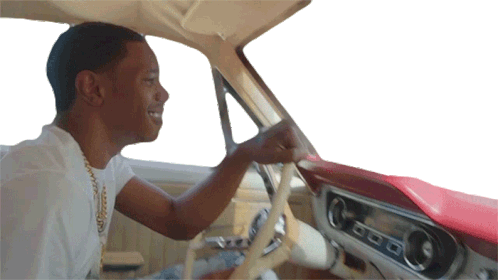 Julius Dubose, also known as A Boogie Wit Da Hoodie, happily driving a classic car, smiling and enjoying the ride.