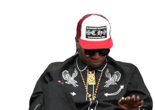 Trinidad James, wearing a Chrome Hearts hat and sunglasses, smiles and gestures, showcasing his distinctive gold grills.