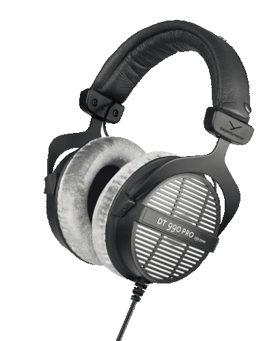 a pair of beyerdynamic dt 990 pro headphones are shown on a white background