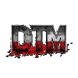A distressed DTM logo featuring dark, metallic letters with dripping red blood effects, set against a clean white background.