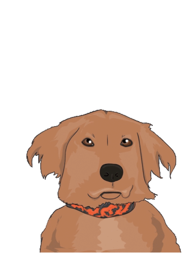 Animated sticker featuring a friendly brown cartoon dog with a patterned collar, showcasing the DUDU PETSPLUS brand name.