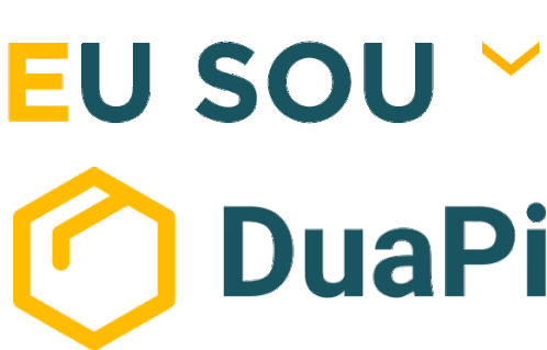 Animated sticker featuring the 'Eu Sou Duapi' logo with a yellow and teal color scheme, representing the brand.