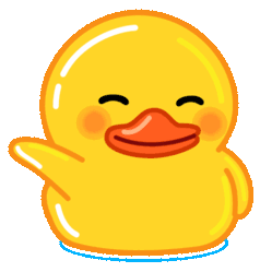 A cheerful yellow duck with rosy cheeks gives a thumbs-up gesture, its eyes winking and then opening.