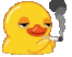 An animated pixel art sticker of a yellow duck character calmly smoking a cigarette with a relaxed, cool expression.