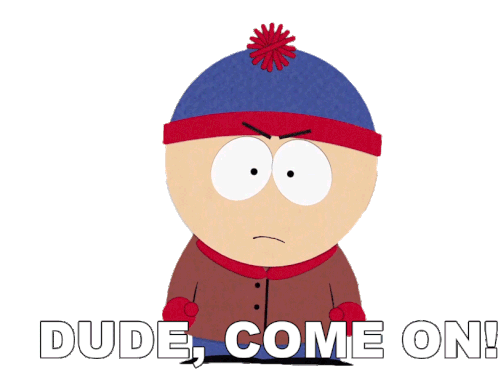 Stan Marsh from South Park expresses frustration with an annoyed face and the caption 'Dude, Come On!'