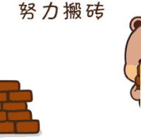 Cute Dudu bear diligently moving bricks, symbolizing hard work with the Chinese caption '努力搬砖' (Work hard moving bricks).