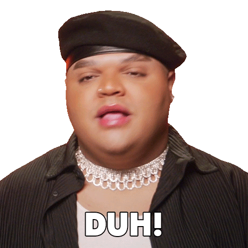 Kandy Muse from RuPaul's Drag Race All Stars reacts with a surprised expression, featuring the word "Duh!".