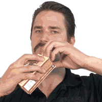 A man with a mustache, Duke Cannon, sniffs a product and reacts with an intensely pleased expression, indicating it smells awesome.