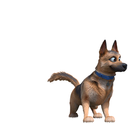 Duke Championdog, the brown German Shepherd, playfully bows down, wags his tail, and looks around with wide eyes, ready to pounce.