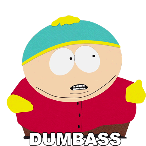 Eric Cartman from South Park, with wide eyes and open mouth, featuring the word 'DUMBASS' below him. A classic Cartman moment.