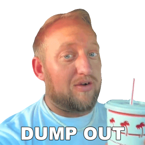 Dj Hunts holds a cup and says 'Dump Out That Trash' in this animated sticker.