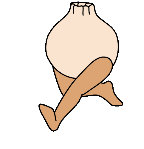 A cute, hungry dumpling with legs is running quickly, perhaps on its way to find food or escape.