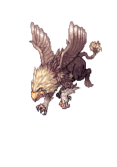 Animated Dungeons and Dragons gryphon monster with flapping wings, hovering above a cloud effect.