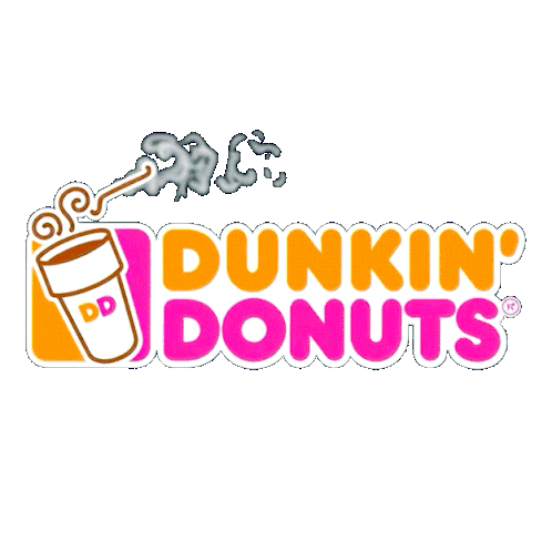 a dunkin donuts logo with smoke coming out of a cup of coffee