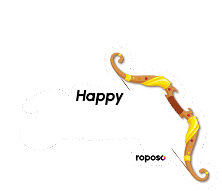 Animated sticker wishing 'Happy Dussehra' with a traditional bow and arrow, celebrating the Indian festival.