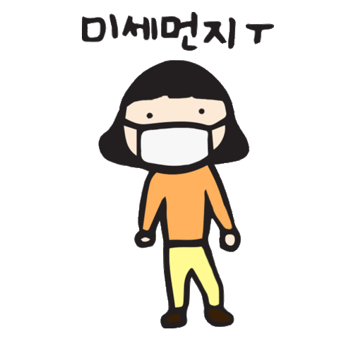 Animated sticker of a person wearing a mask during a dust storm, symbolizing protection from polluted air.