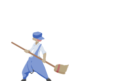 Dustforce Dustman character swings a broom with a powerful sweeping motion, creating a wide attack effect.