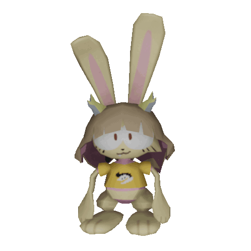 a cartoon rabbit wearing a yellow shirt with a smiley face on it