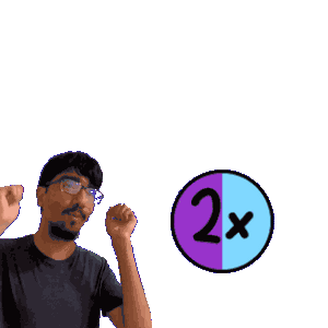 a man stands in front of a sign that says multiplyer + sticky tiplysticky 2x