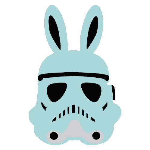 A unique Star Wars Stormtrooper helmet reimagined with cute bunny ears, perfect for Easter celebrations.