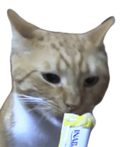 Marmalade, the famous cat from Cole and Marmalade, happily enjoys a delicious treat from a pouch, licking it with gusto.