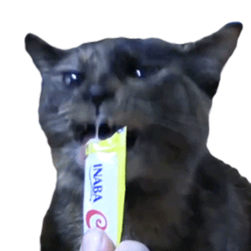 Cole And Marmalade's cat enjoying an INABA Churu treat, licking it happily. A cute and satisfying snack time sticker.