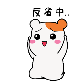Ebichu the hamster looks flustered and embarrassed, with the Chinese text '反省中' (In Reflection) appearing above its head.