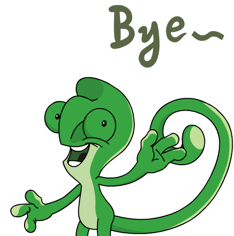 Ebm-papst's Leon the green chameleon waves goodbye and disappears in a puff of smoke.