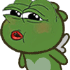ếchlaiong Pepe Qoobee, the green frog character, pouts with red lips and blows a sweet kiss.