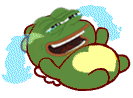 The animated character ếchlaiong Pepe Qoobee is shown crying with large tears streaming down its face.