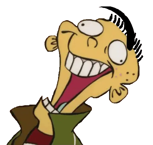 Eddy from Ed, Edd n Eddy, holds a hockey stick and rake in this animated pixel art sticker, ready for action.