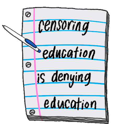 A powerful message stating 'Censoring education is denying education,' with words being crossed out to emphasize the impact.